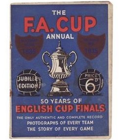 Brochure commemorating the 50th Jubilee of the FA Cup in 1935, 1885 being the first year the Cup was open to professional sides. Contains a history of the competition, year by year, with photographs of the winning clubs.