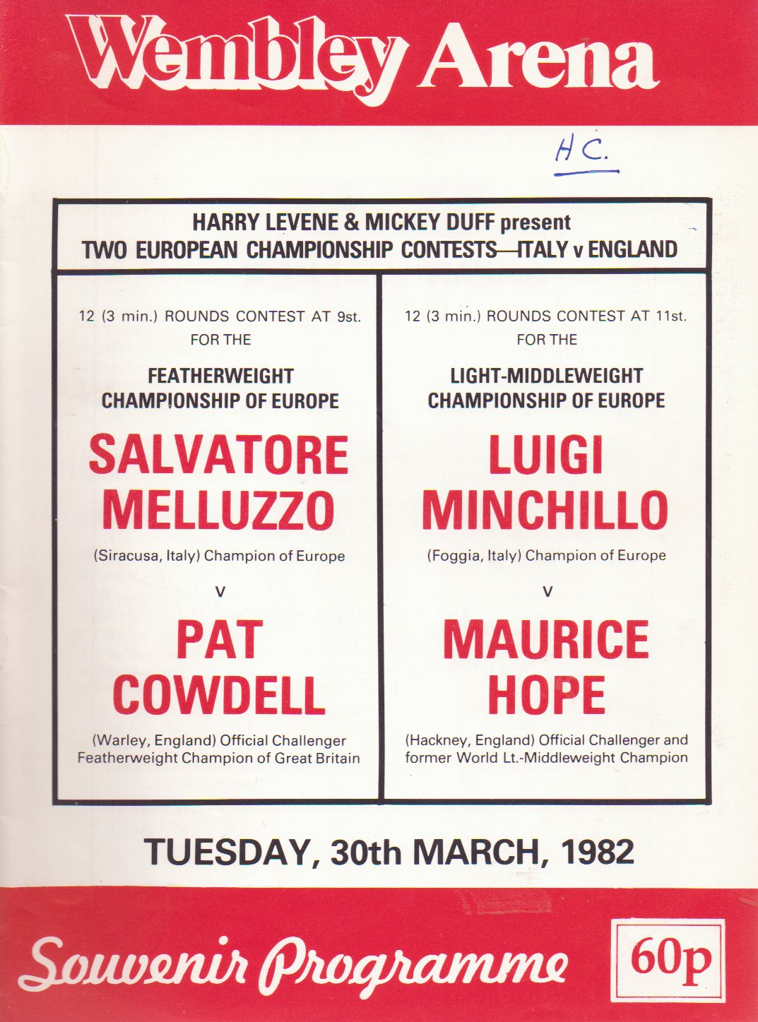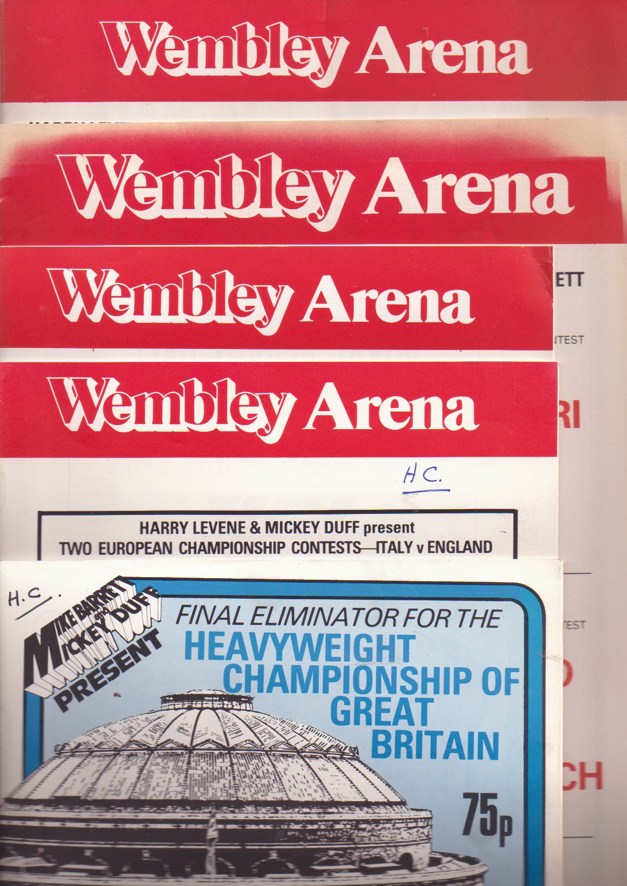 All 5 programmes were the ringside copies belonging to the commentator Harry Carpenter and contain his handwritten notes and results.