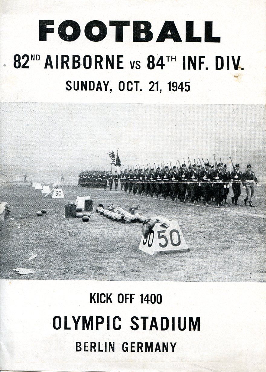 American Football (Gridiron) programme for the match played between the 82nd Airborne and the 84th Infantry Division on October 21, 1945, at the Olympic Stadium, Berlin, Germany.