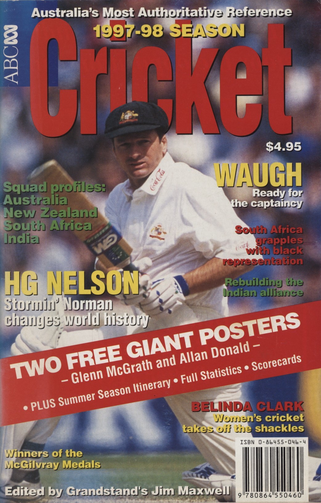 Australian reference guide to domestic and international cricket for the 1997/98 season, including fixtures, records, articles and profiles of the Australia, South Africa, India and New Zealand squads, plus a pull-out double-sided poster of Glen McGrath and Allan Donald.