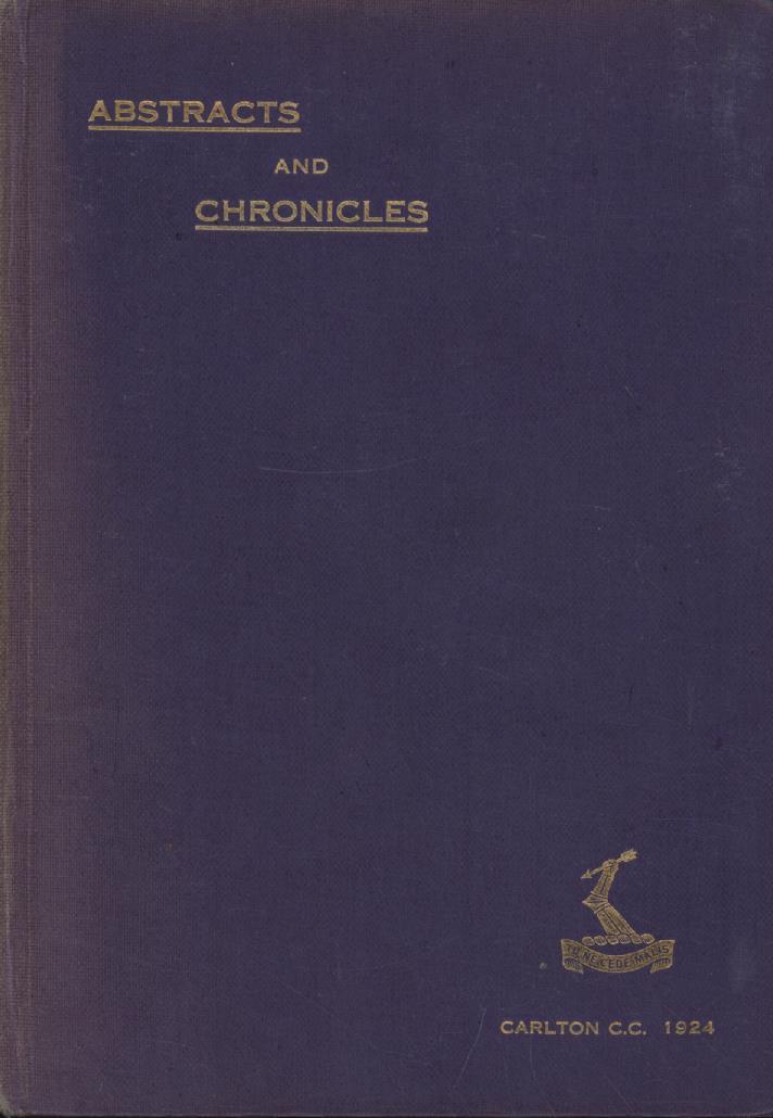 Cricket » Cricket Books » Cricket Club History » ABSTRACTS AND CHRONICLES - CARLTON CRICKET CLUB 1924