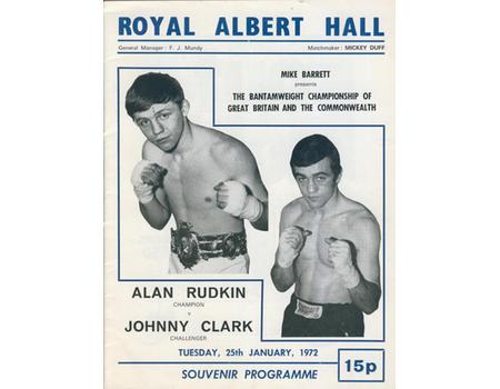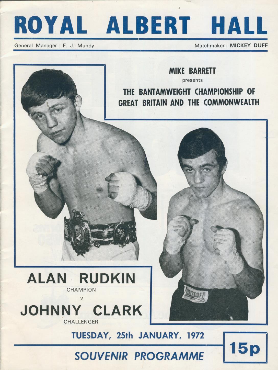 ALAN RUDKIN V JOHNNY CLARK 1972 BOXING PROGRAMME
