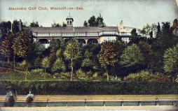 Golf postcard. Titled "ALEXANDRA GOLF CLUB, WESTCLIFF-ON-SEA". In the A.H.J. series. Colour tinted. Postally used and dated 1911. Rounded corners. Uncommon. Good.