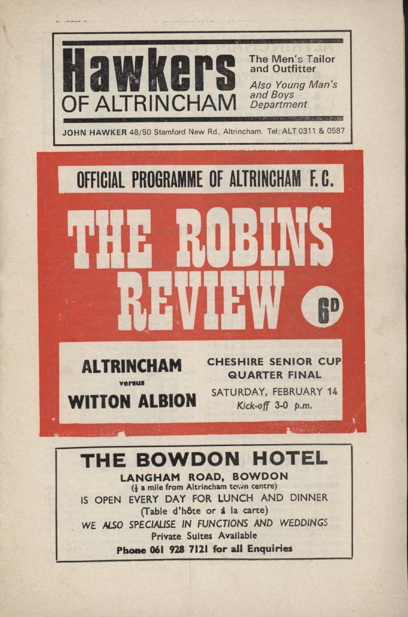 ALTRINCHAM V WITTON ALBION (CHESHIRE SENIOR CUP 1/4 FINAL) 1968-69 FOOTBALL PROGRAMME