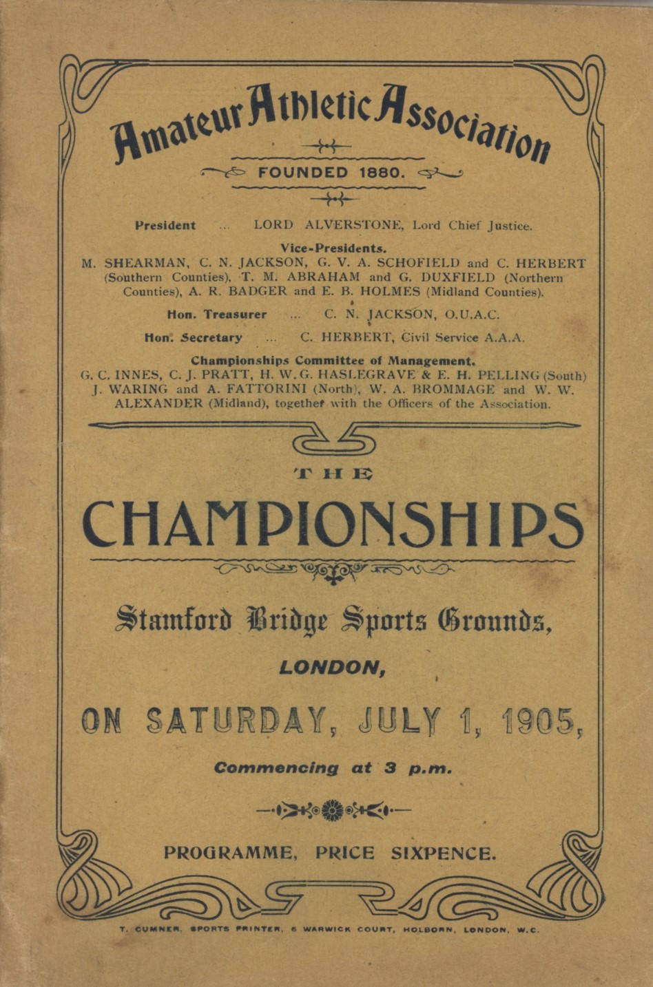 Other Sports » Olympics & Athletics » Olympics & Athletics Programmes » Other Athletics Programmes » AMATEUR ATHLETIC ASSOCIATION CHAMPIONSHIPS 1905 (STAMFORD BRIDGE) PROGRAMME