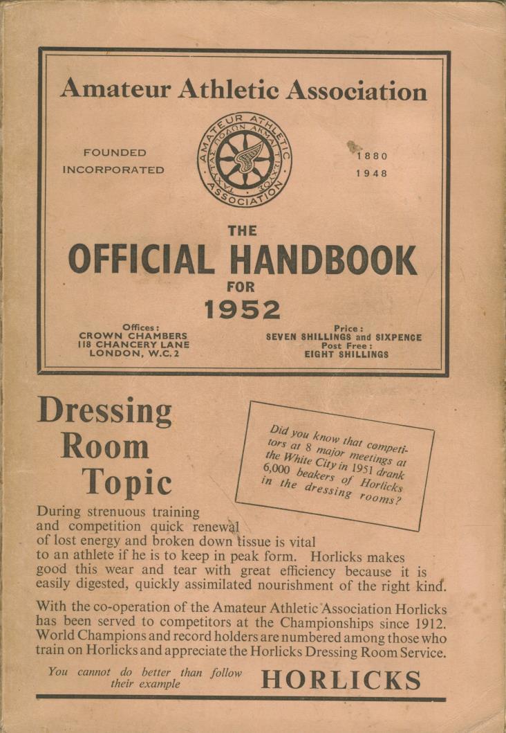 AMATEUR ATHLETIC ASSOCIATION HANDBOOK 1952
