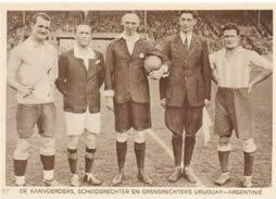 Sepia photo of match officials and captains of Uruguay and Argentine before the Football Final, Amsterdam Olympic Stadium, 1928. Uruguay won the gold, a result they were to emulate in the first World Cup Final in Montevideo, 1930. White border. Postally unused. VG.