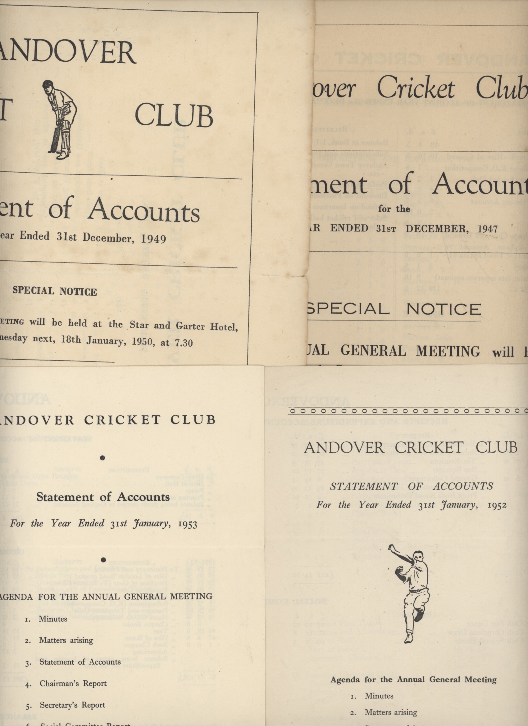 Cricket » Cricket Books » Cricket Club History » ANDOVER CRICKET CLUB STATEMENT OF ACCOUNTS 1947-53 (4 IN TOTAL)