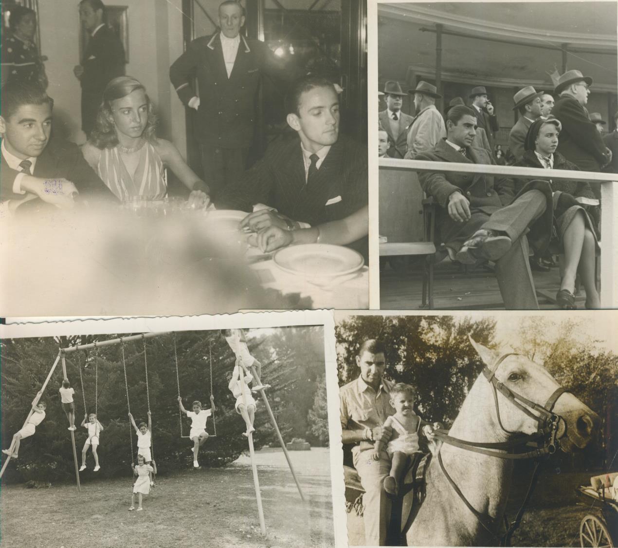 Four original Press photographs of the Argentinian fencer who competed in the 1924 Olympics. They include an informal photo at a party, on horseback with a child and a group of his 8 children on swings.