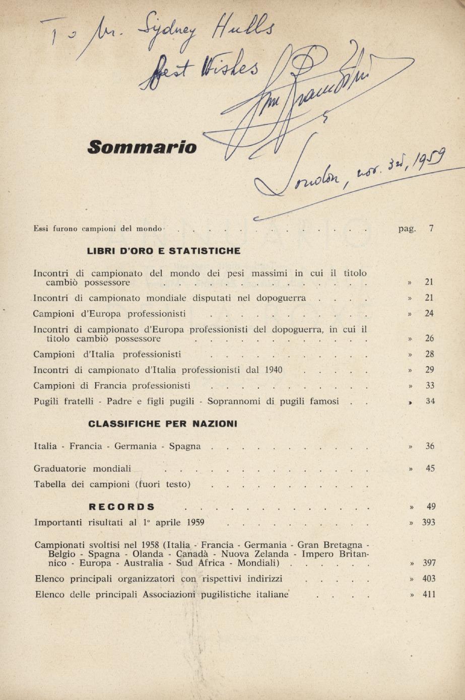Paperback. 24 x 16cm. 418pp. Covers are lightly rubbed to edges. Good condition. Presentation copy signed by the author Umberto Branchini to summary page, and dedicated to the well-known boxing journalist Sydney Hulls.