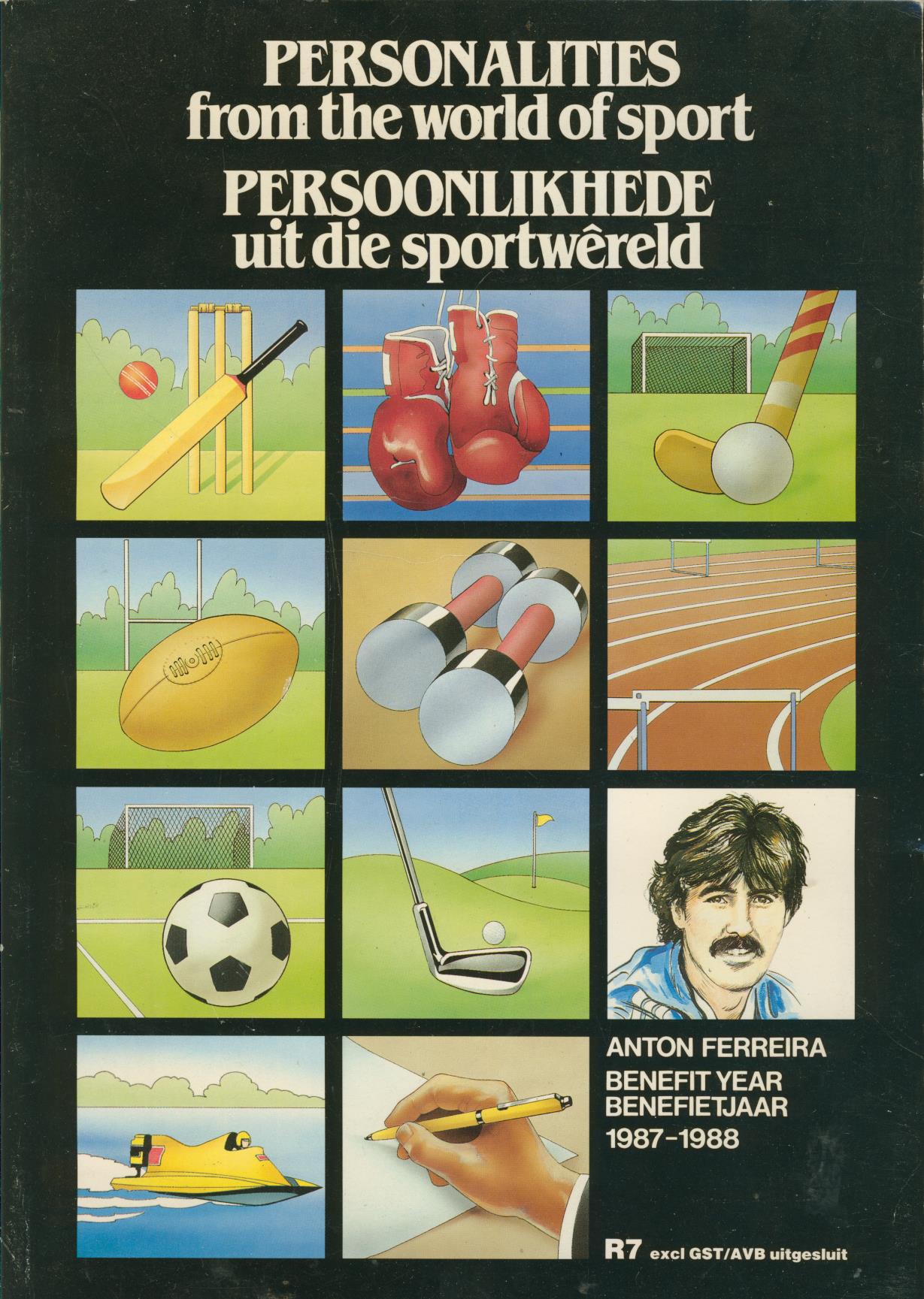 Cricket benefit brochure. Large format. Pictorial card covers. 96pp. A very good copy. Text in English and Afrikaans.Ex. Woodhouse collection (bookplate).