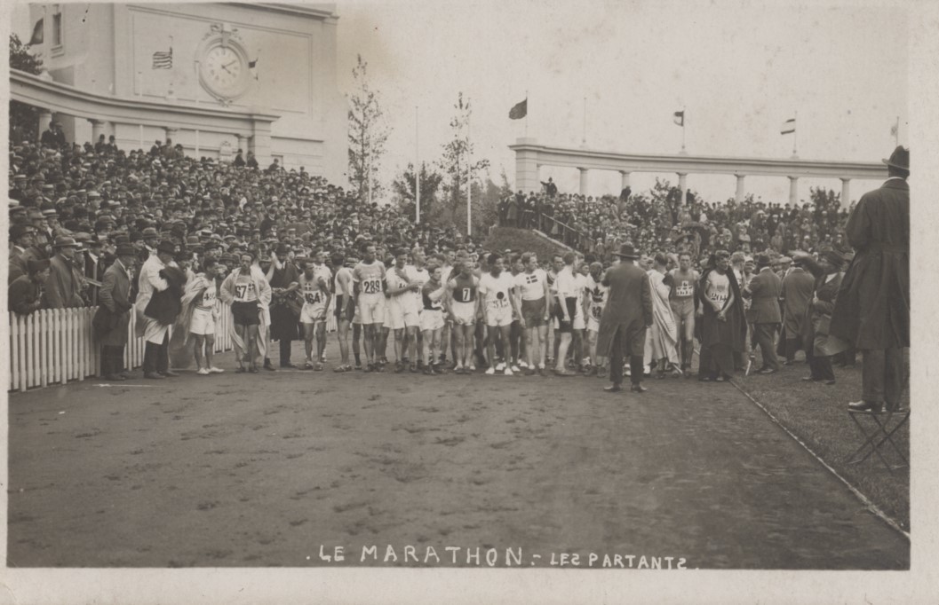 Original postcard from the 1920 Olympic Games in Antwerp. This shows the start of the Marathon on August 22nd, 1920, which was won by the original Flying Finn - Hannes Kolehmainen.