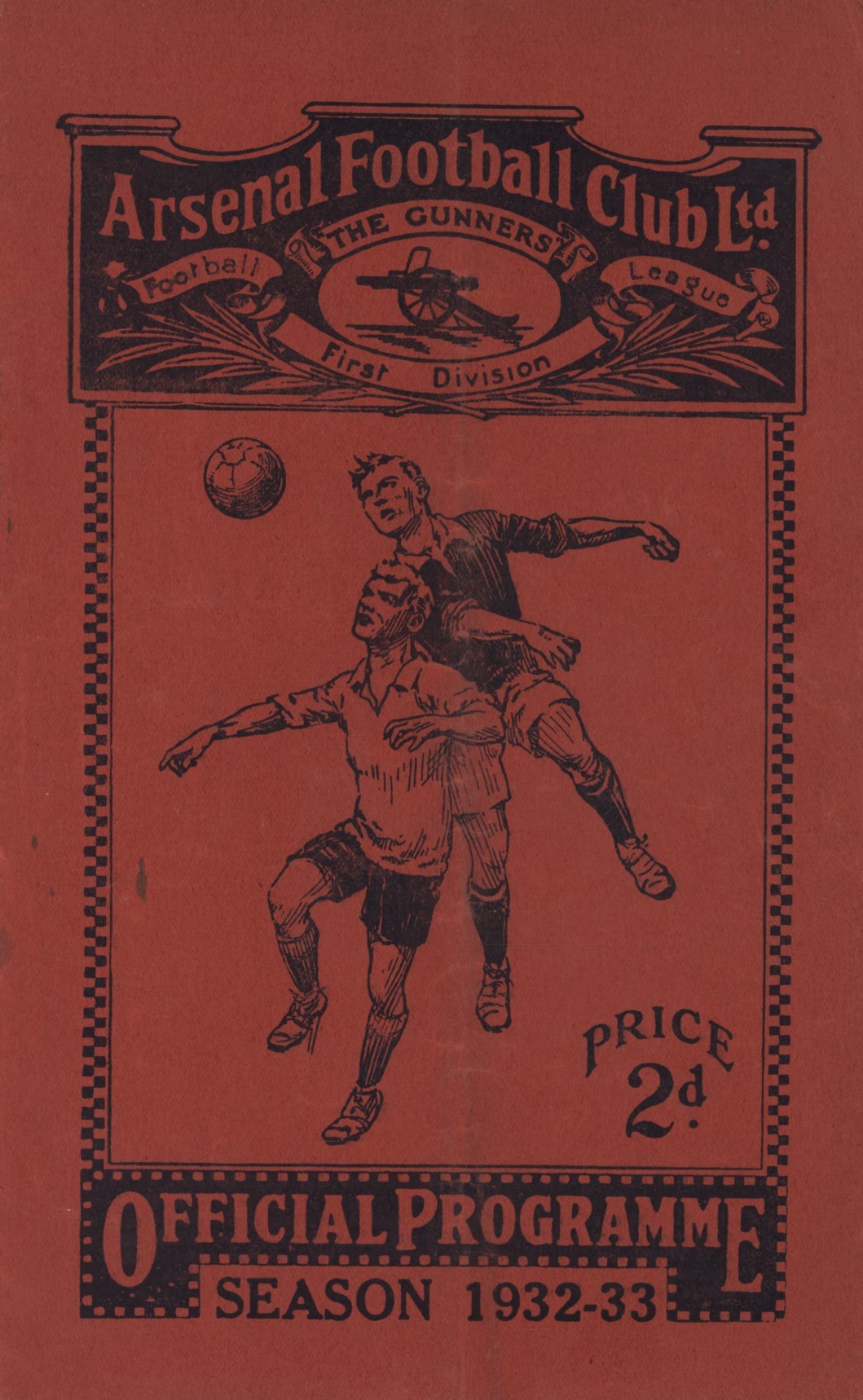 Official football programme for the league match between Arsenal and Aston Villa at Highbury, April 1st, 1933. Arsenal defeated their closest rivals for the league title 5-0.