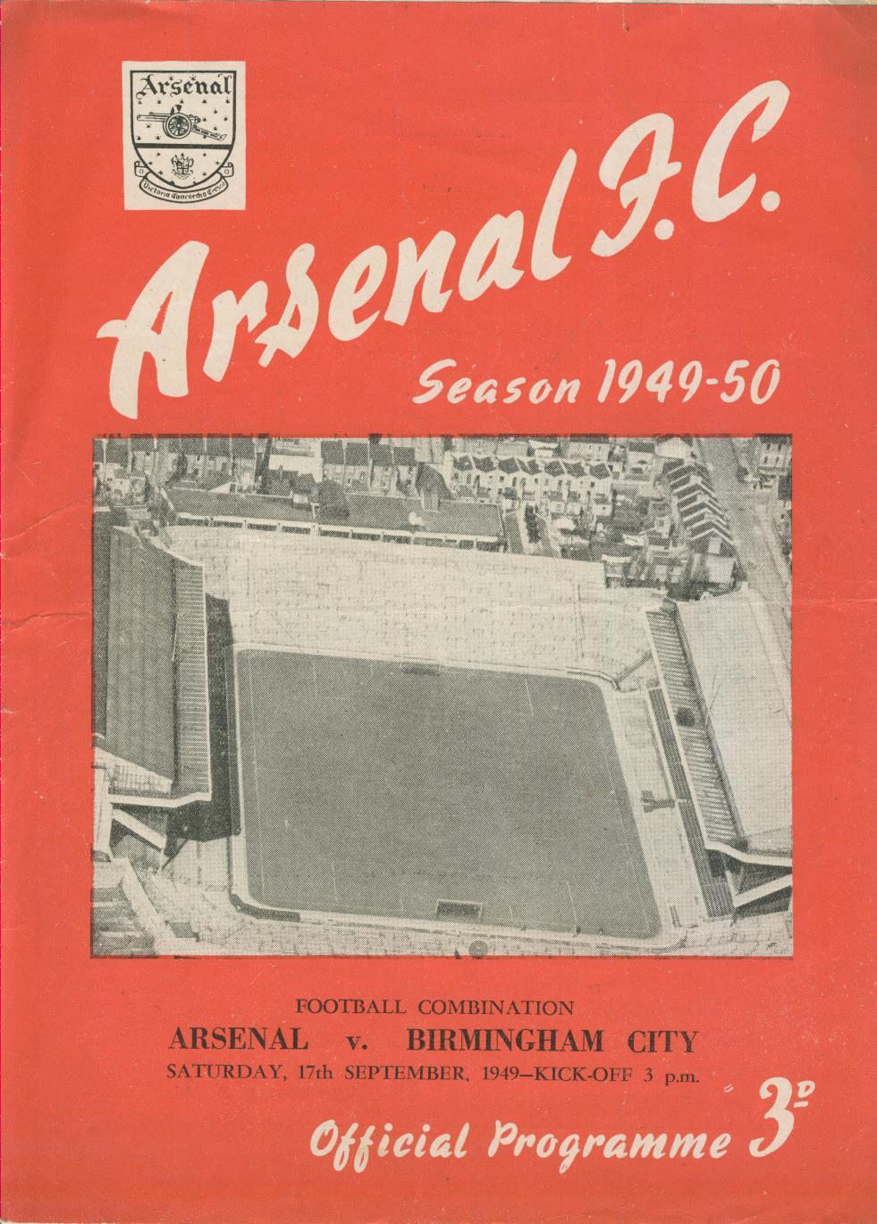 Official football match programme for the Football Combination match played at Highbury on Sept 17th 1949.