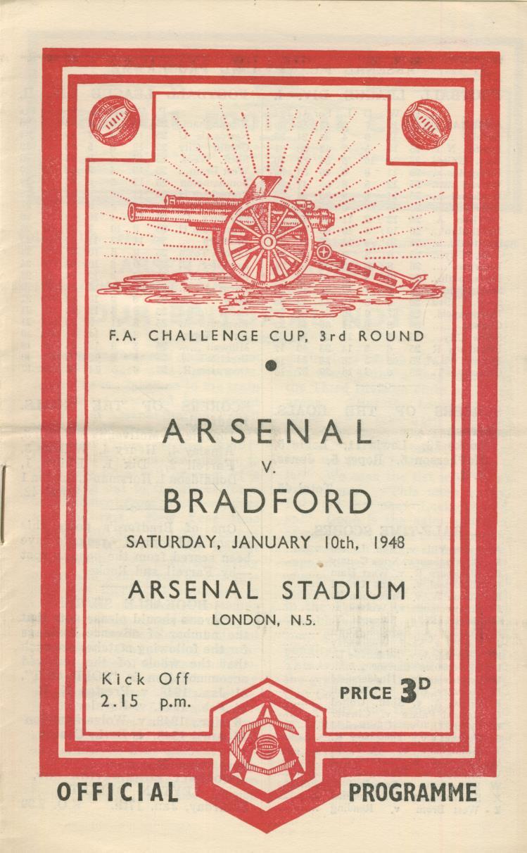 Official football match programme from the FA Cup match played at Highbury on January 10th 1948.