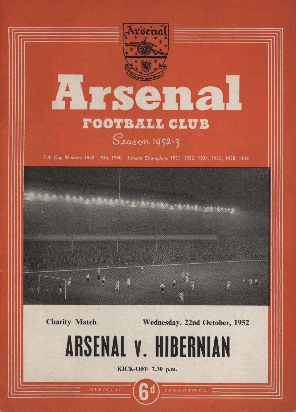 ARSENAL V HIBERNIAN (CHARITY MATCH) 1952-53 FOOTBALL PROGRAMME