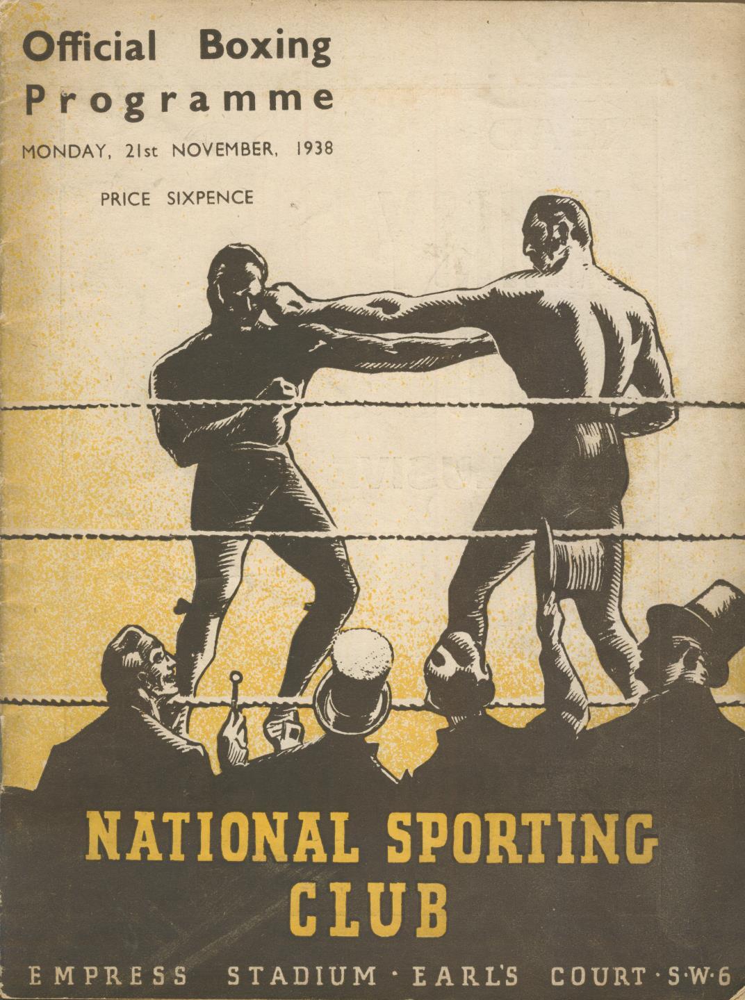 Official boxing programme for the National Sporting Club contests, held at Earl's Court on November 21st 1938.
