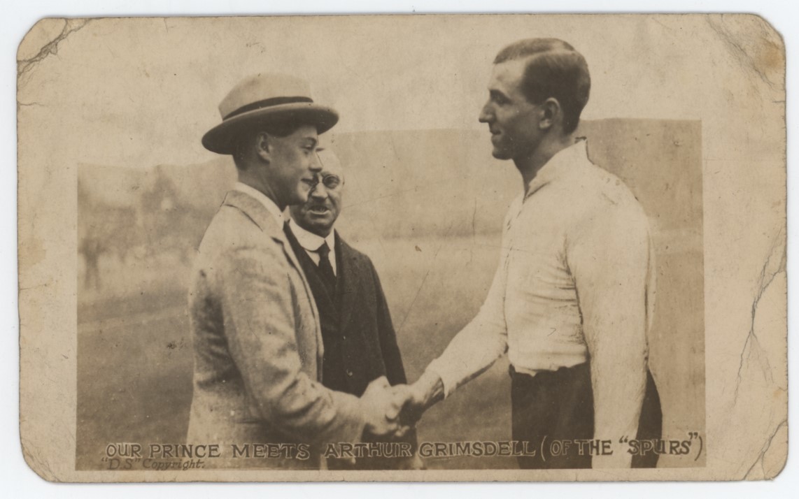 Football » Football Postcards » Football Players » ARTHUR GRIMSDELL (TOTTENHAM HOTSPUR) MEETS PRINCE OF WALES 1920-21 FOOTBALL POSTCARD