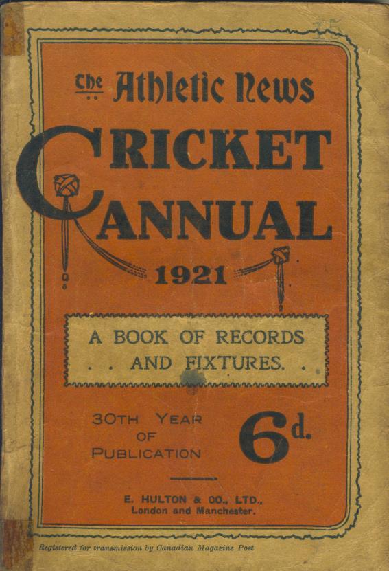 ATHLETIC NEWS CRICKET ANNUAL 1921