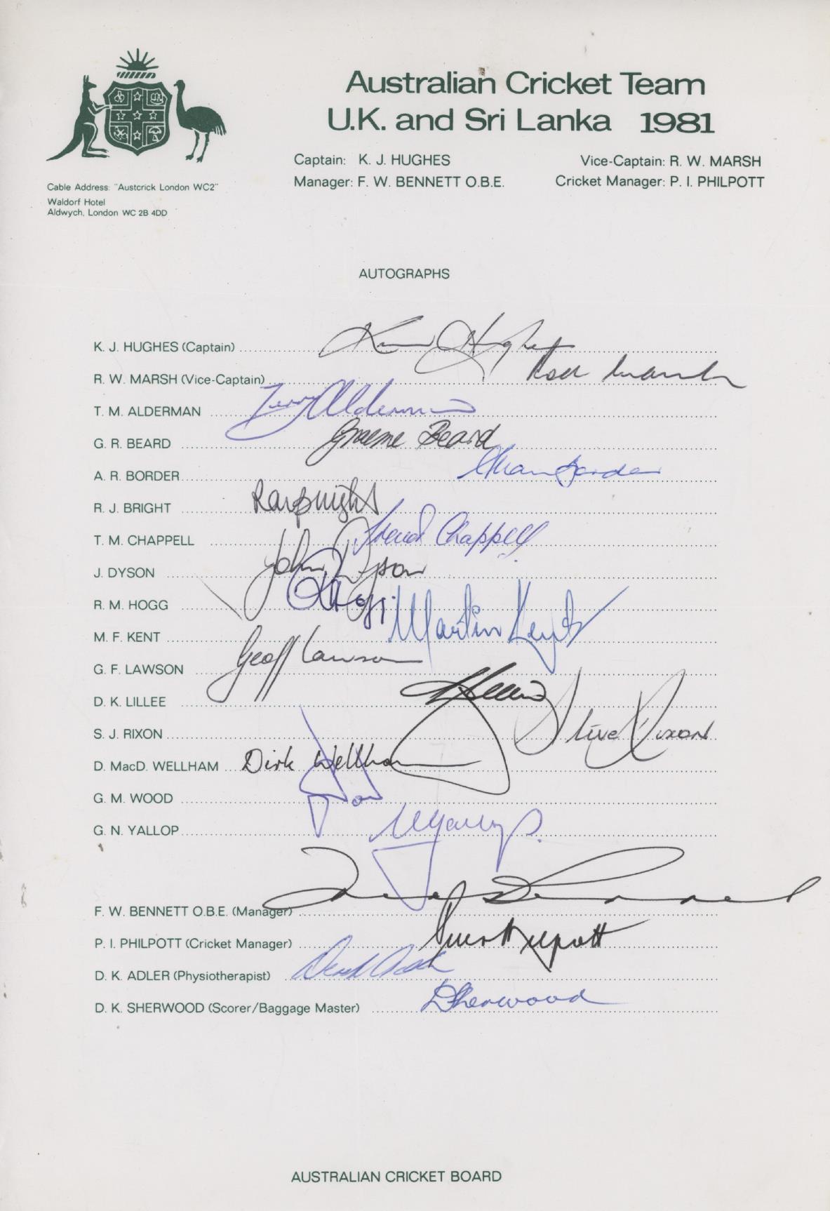 Cricket » Cricket Autographs » Cricket Team Sheets » AUSTRALIA 1981 CRICKET AUTOGRAPHS