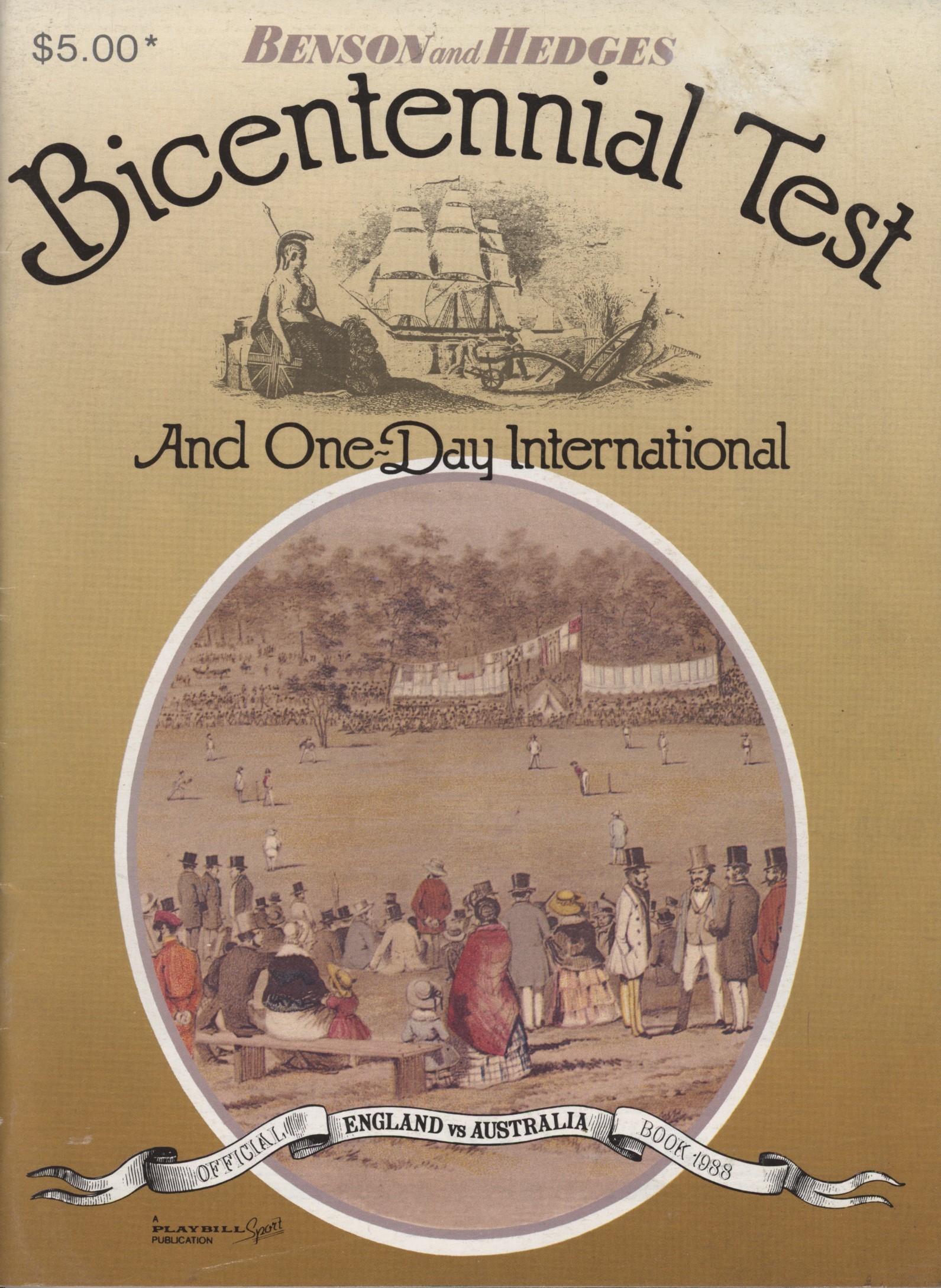 Official brochure for the Test and one day international at Sydney in 1988 to celebrate the Australian bicentenary.
