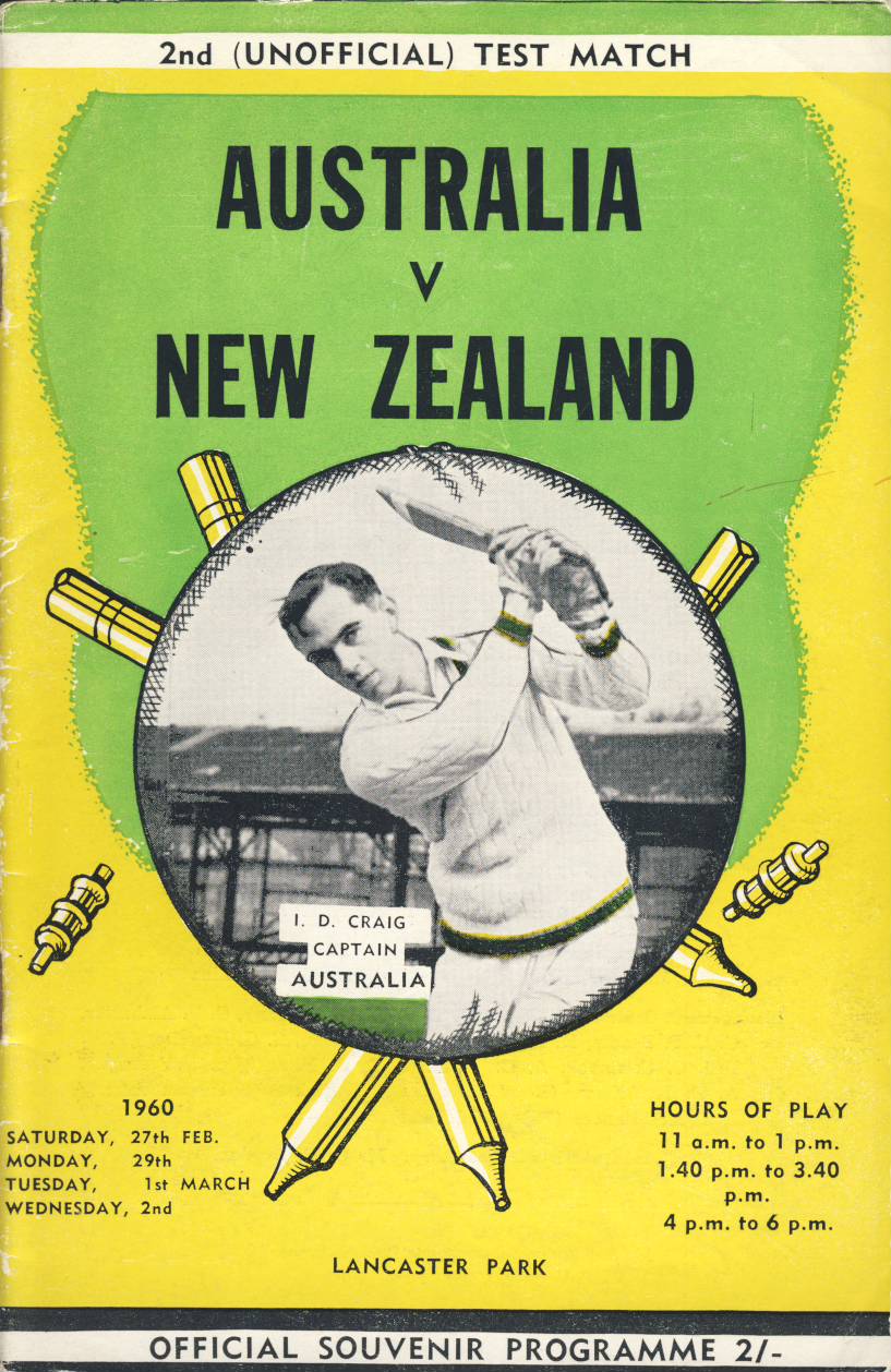Official souvenir programme for the unofficial Test Match between Australia and New Zealand at Lancaster Park, 27th of February to 2nd of March,1960.