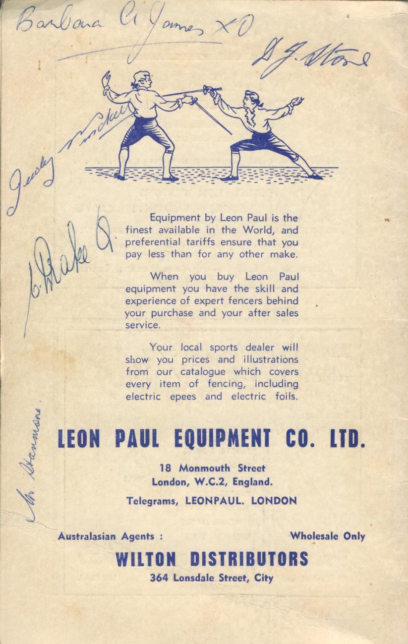 Other Sports » Other Minor Sports » Memorabilia » General » AUSTRALIAN FENCING CHAMPIONSHIPS 1956 PROGRAMME - EXTENSIVELY SIGNED
