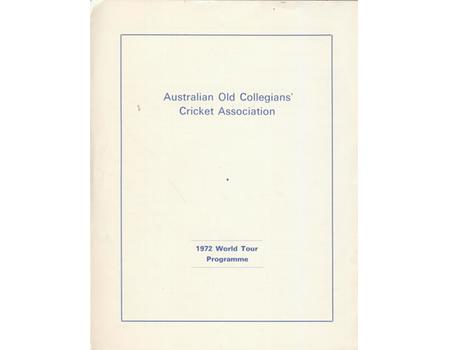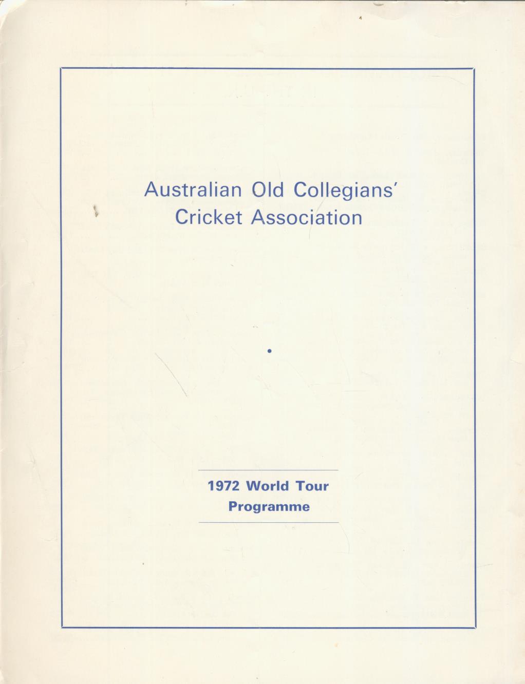 AUSTRALIAN OLD COLLEGIANS' CRICKET ASSOCIATION WORLD TOUR 1972 BROCHURE