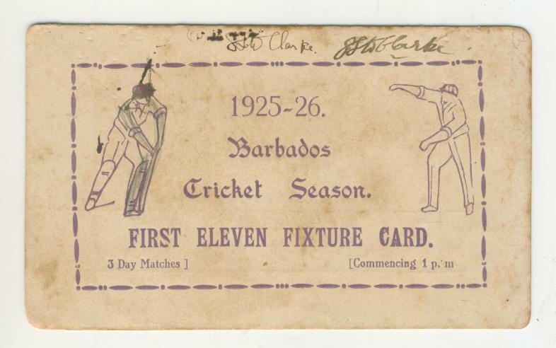 BARBADOS CRICKET SEASON 1925-26 (FIXTURE CARD)