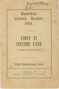 BARBADOS CRICKET SEASON 1931 (FIXTURE CARD)