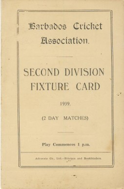 BARBADOS CRICKET SEASON 1939 (2ND DIVISION FIXTURE CARD)