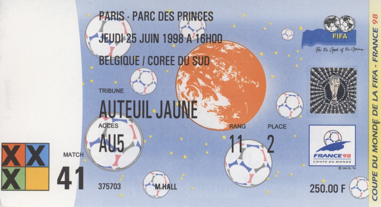 Football » Football Memorabilia » Tickets & Passes » BELGIUM V SOUTH KOREA 1998 (WORLD CUP) FOOTBALL TICKET