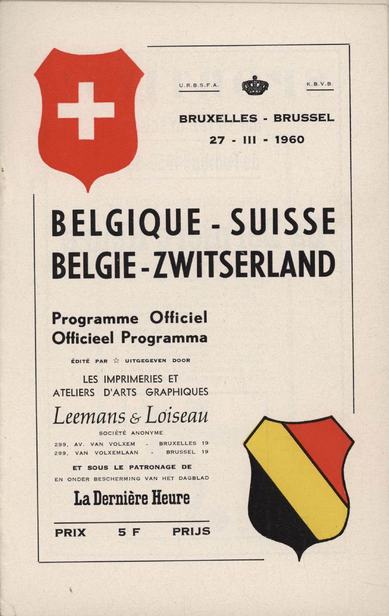 Official football programme for the match played in Brussels on 27 March1960. In French.