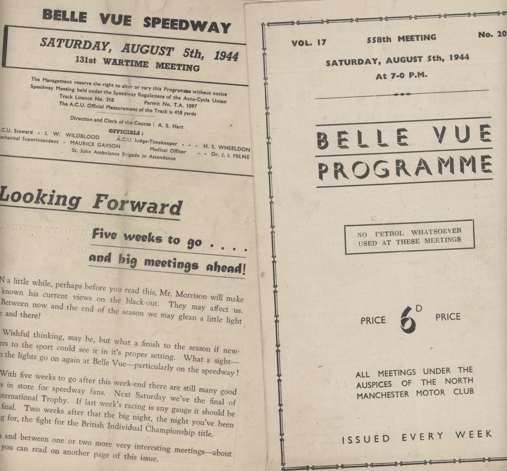 The official programme and accompanying bulletin for the 131st wartime meeting at the Manchester track.