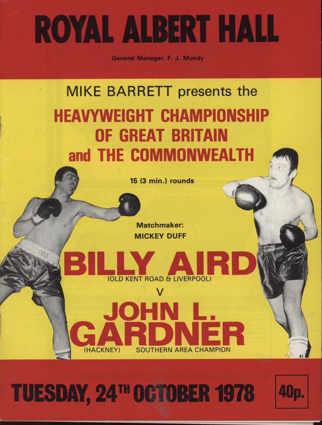 BILLY AIRD V JOHN L GARDNER 1978 BOXING PROGRAMME
