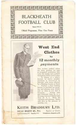 Official programme for the match played at Rectory Field, Blackheath, on November 7 1931. Match ended 3-3.