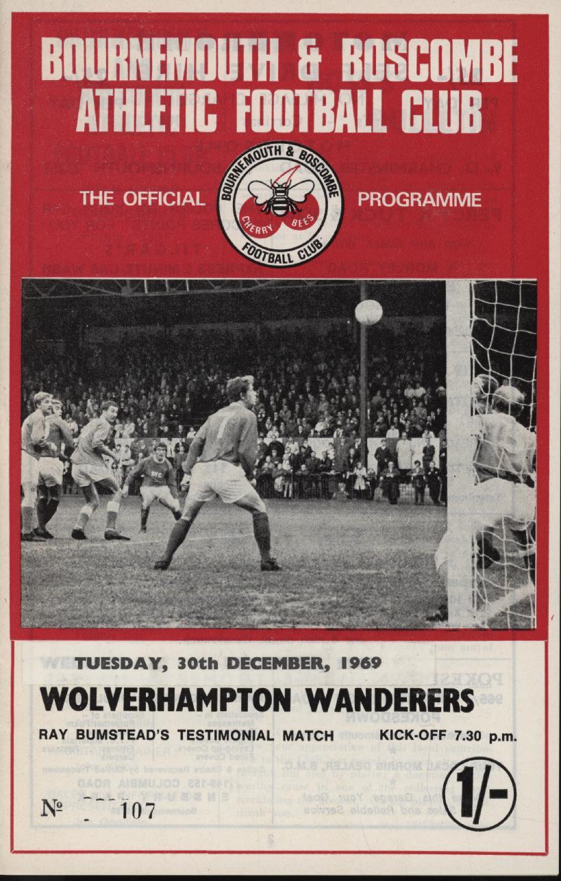 BOURNEMOUTH & BOSCOMBE AFC V WOLVERHAMPTON WANDERERS (RAY BUMSTEAD TESTIMONIAL) 1969 FOOTBALL PROGRAMME