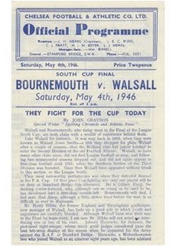 Official programme for the South Cup Final between Bournemouth and Walsall played at Stamford Bridge, May 4th 1946. Bournemouth won 1-0.