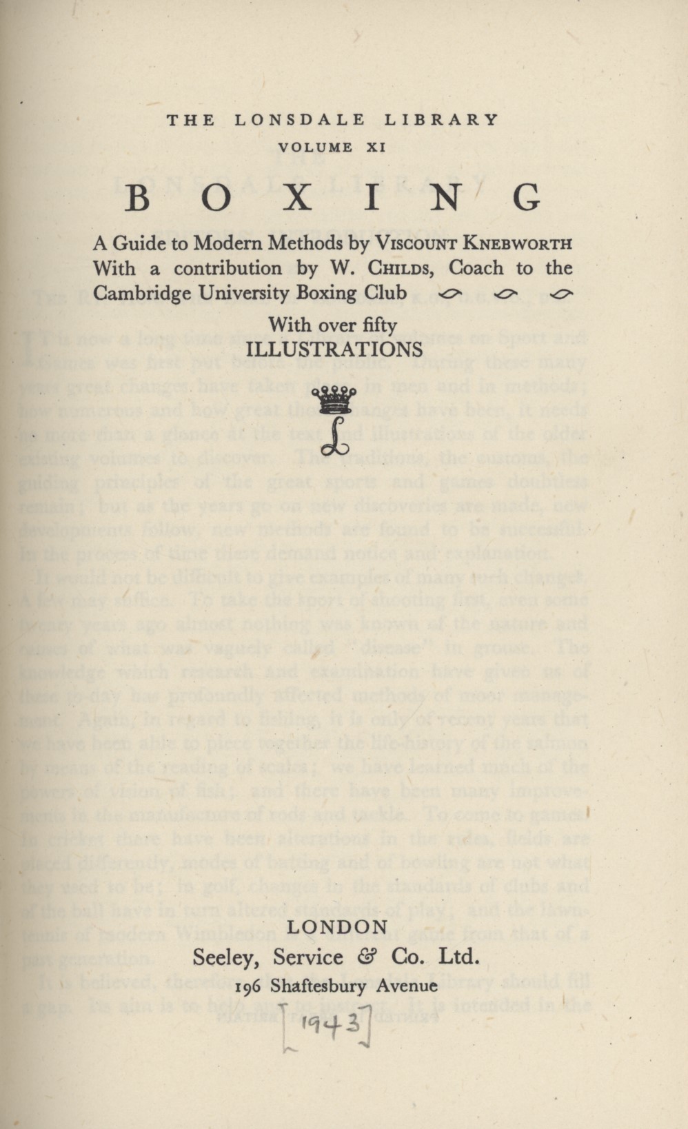 Volume XI of the Lonsdale Library of Sports, Games & Pastimes, with a contribution by W. Childs, coach to the Cambridge University Boxing Club.