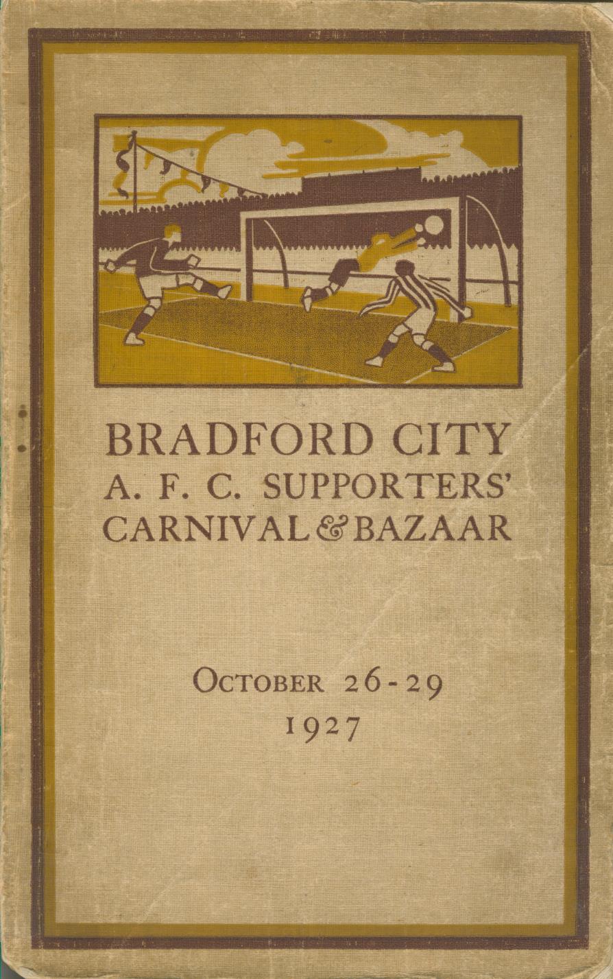 The first published history of the Bradford City Football Club issued as a programme for the supporters' bazaar, October 26-29 1927.