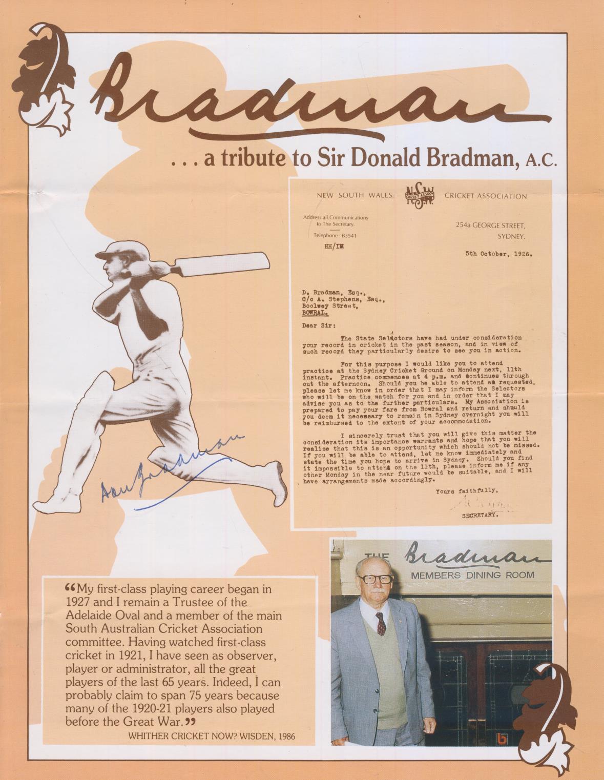 Cricket » Cricket Brochures » General Cricket Brochures » BRADMAN ... A TRIBUTE TO SIR DONALD BRADMAN 1986 (SIGNED BY BRADMAN)