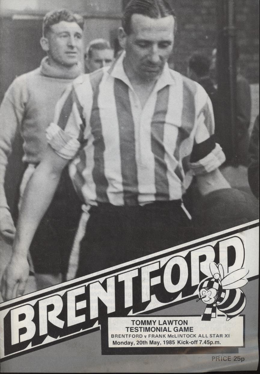 Football » Football Programmes » Testimonial & Charity Matches » BRENTFORD V FRANK MCLINTOCK ALL STAR XI (TOMMY LAWTON TESTIMONIAL) 1984-85 FOOTBALL PROGRAMME