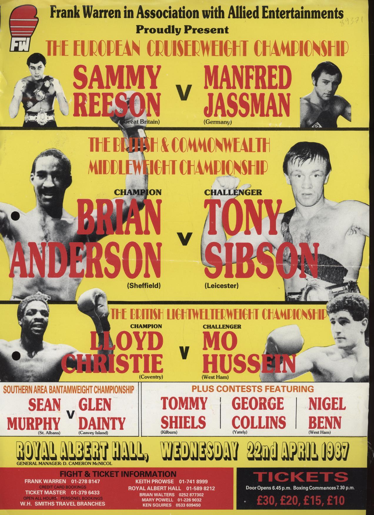 BRIAN ANDERSON V TONY SIBSON 1987 (ROYAL ALBERT HALL) BOXING FLYER