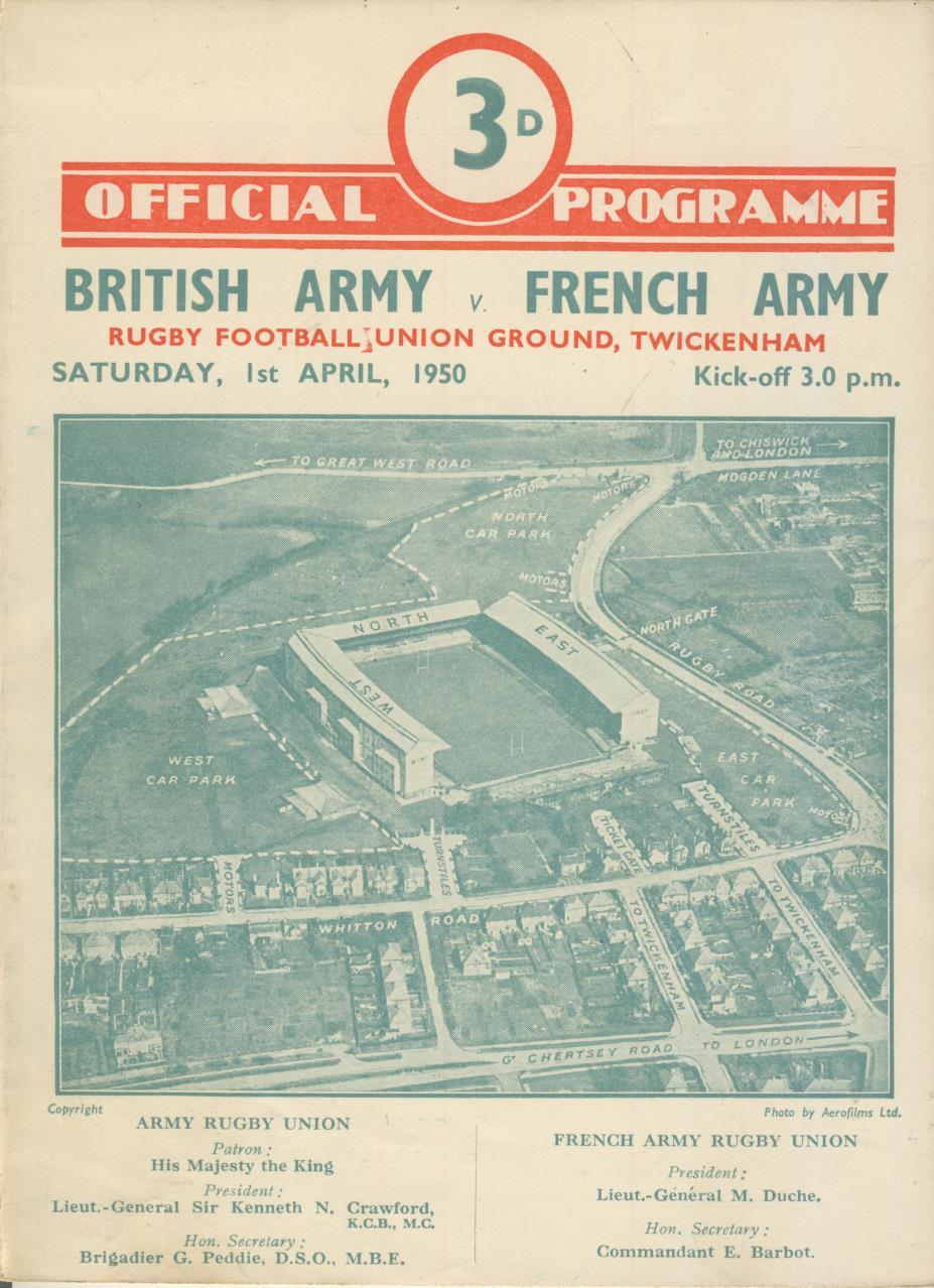 BRITISH ARMY V FRENCH ARMY 1950 RUGBY PROGRAMME