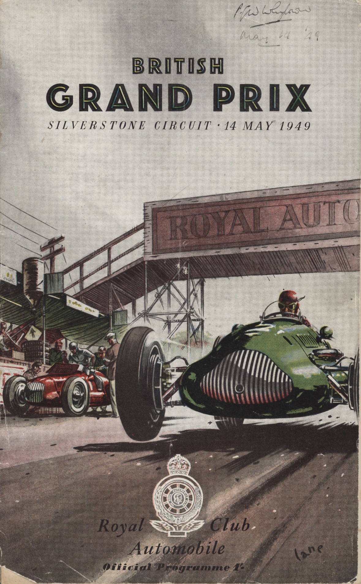 Official programme for the R.A.C. British Grand Prix held at Silverstone, 14th May 1949. The race was won by the Swiss driver, Baron Emmanuel de Graffenreid in a Maserati. It was not part of the Formula One World Championship.
