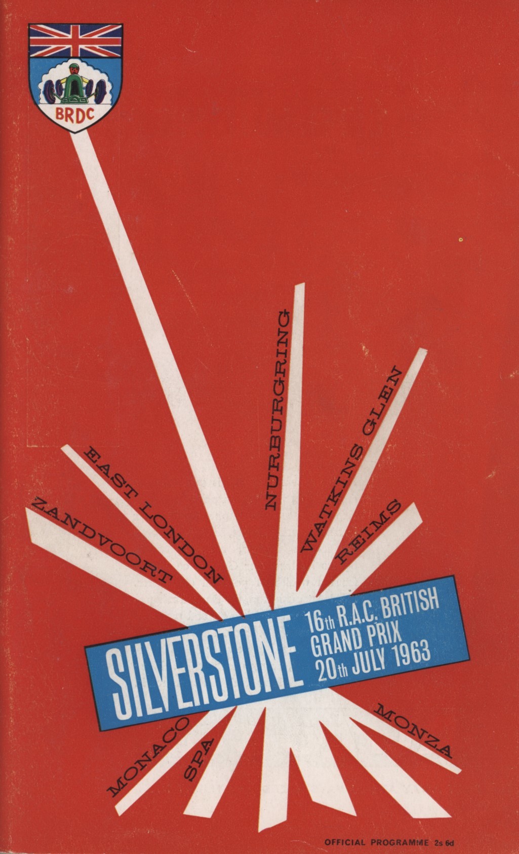 Official programme for the R.A.C. British Grand Prix held at Silverstone, 20th July 1963. The race was won for Lotus by the British driver, Jim Clark, from John Surtees and Graham Hill in a British 1-2-3. Clark subsequently went on to triumph in the Formula One World Championship with seven wins out of ten.