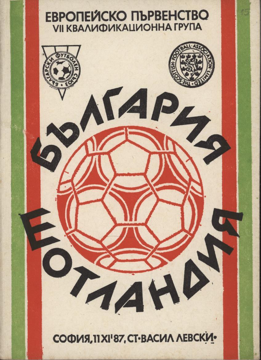 Official programme for match played in Sofia on 11th November 1987. Scotland won the match 1-0.