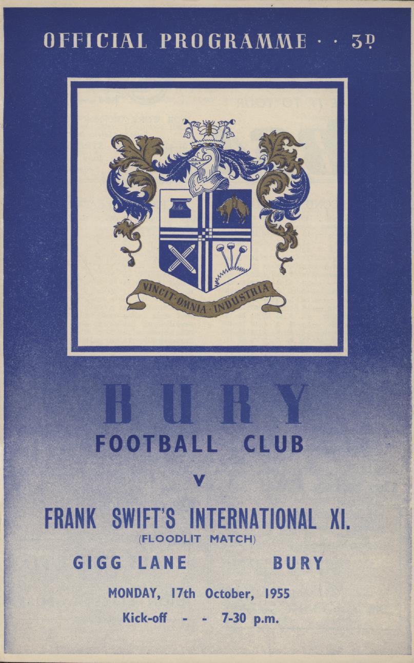 Football » Football Programmes » Testimonial & Charity Matches » BURY V FRANK SWIFT'S INTERNATIONAL XI 1955-56 FOOTBALL PROGRAMME