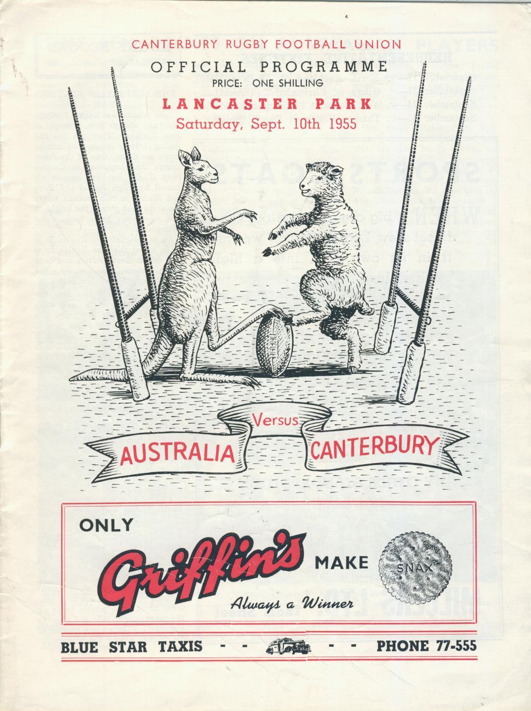 CANTERBURY V AUSTRALIA 1955 RUGBY PROGRAMME