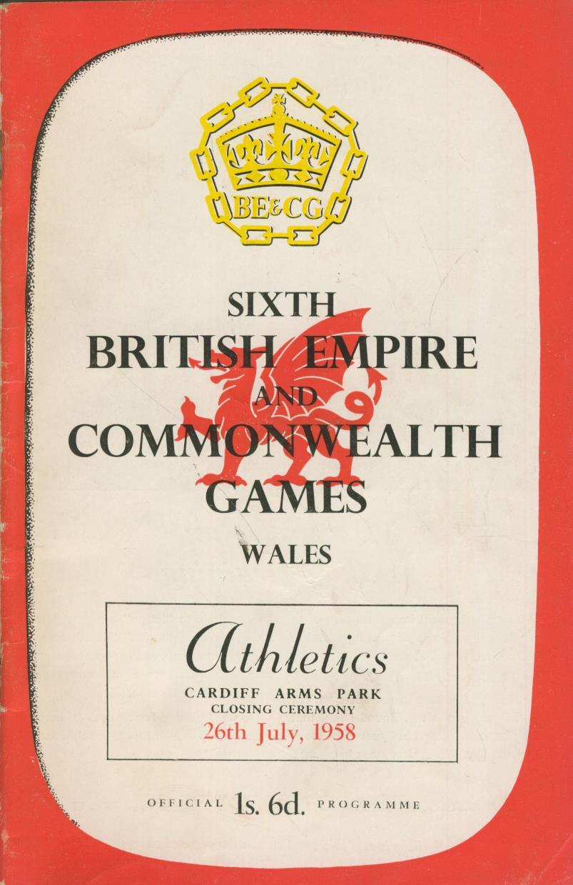 Official programme for the athletics events at Cardiff Arms Park on 26th July 1958 - also includes the Closing Ceremony.